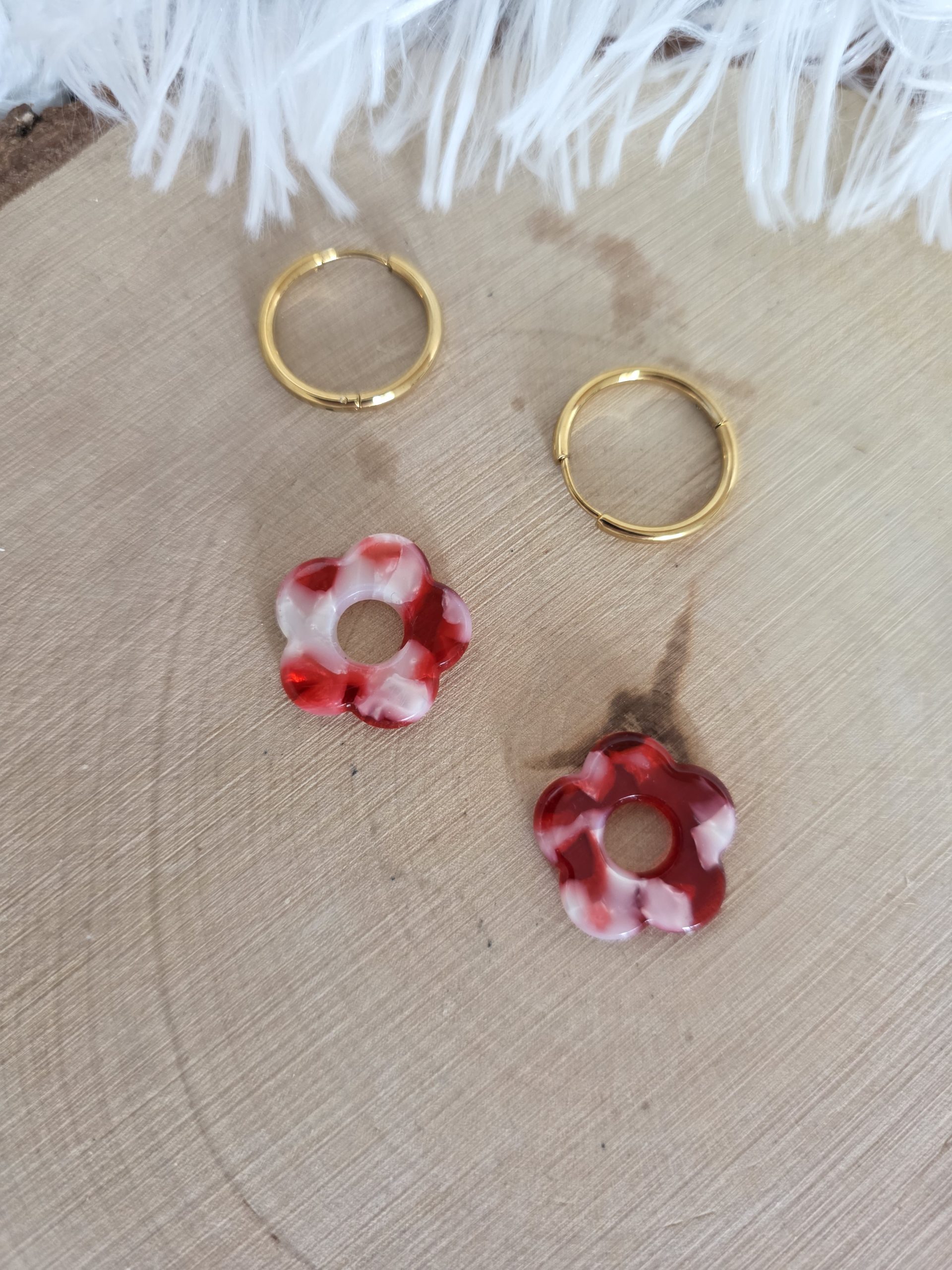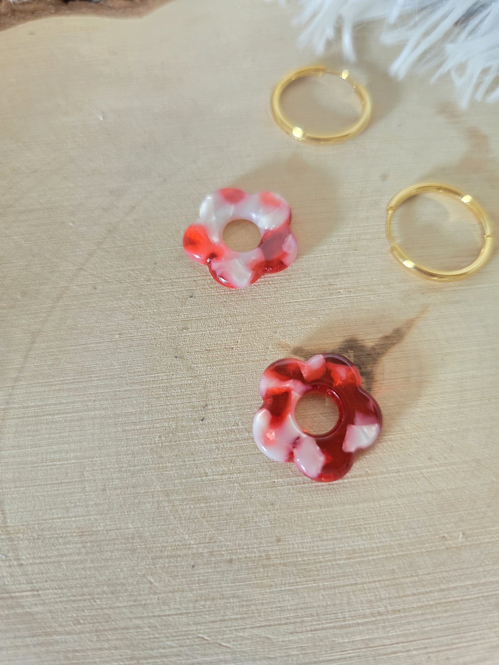 Charm petite fleur rouge marbré