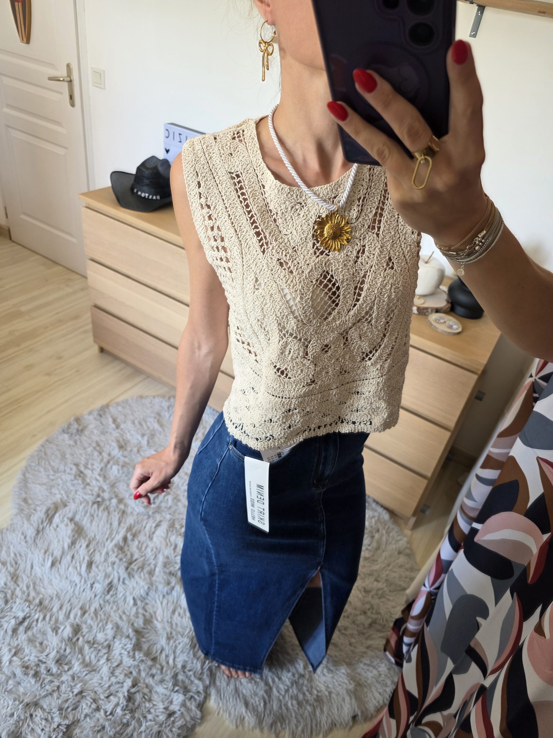 - Le modèle porte une taille 34 et mesure 1m63
